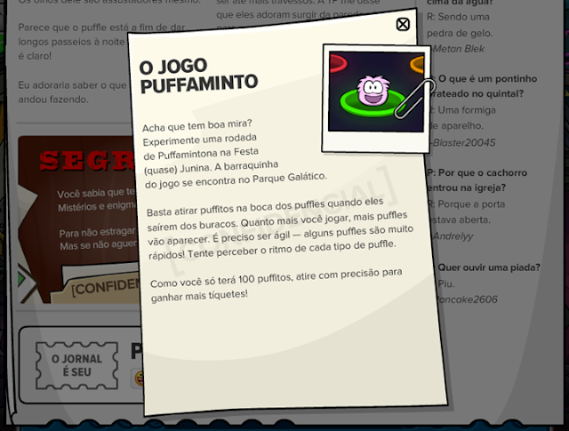 Finalmente, vejam o Confidencial, com dicas sobre o jogo Puffaminto, um dos jogos que vai estar na Festa (quase) Junina.